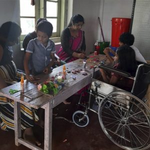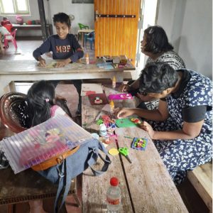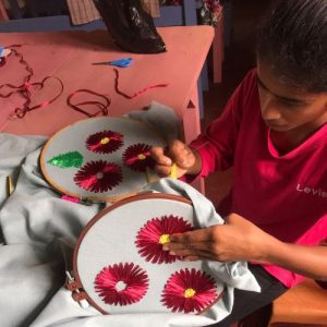 Tharuka Maduwanthi, born in 1998, faced Spina Bifida’s challenges and didn’t attend school. Her family taught her to read and write, nurturing her love for arts and crafts. She rarely left home for 23 years. Then, the Suriya Foundation discovered her talent. Tharuka excelled at sewing and crafting, and we saw an opportunity to help. We asked her to teach these skills to older kids in local schools, paying her a stipend as a thank-you. Tharuka eagerly awaited her teaching days each week, finding joy in sharing her knowledge.